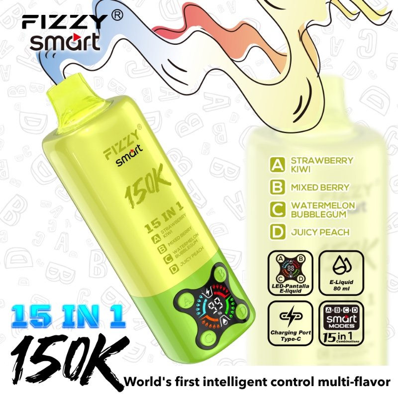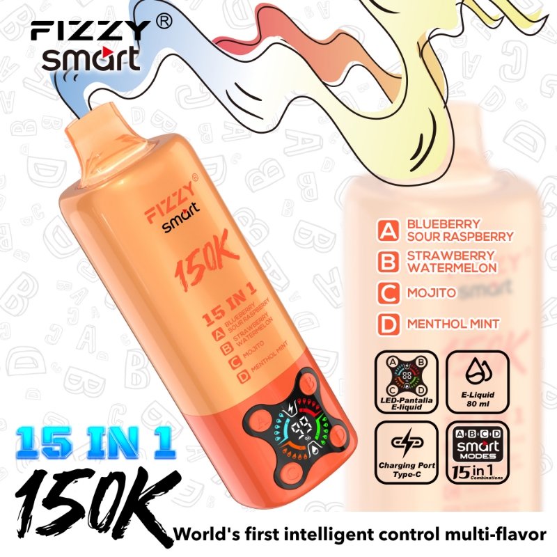Fizzy Smart 15 in1 150K 150000 Puffs Rechargeable Disposable Vape Flavors Wholesale